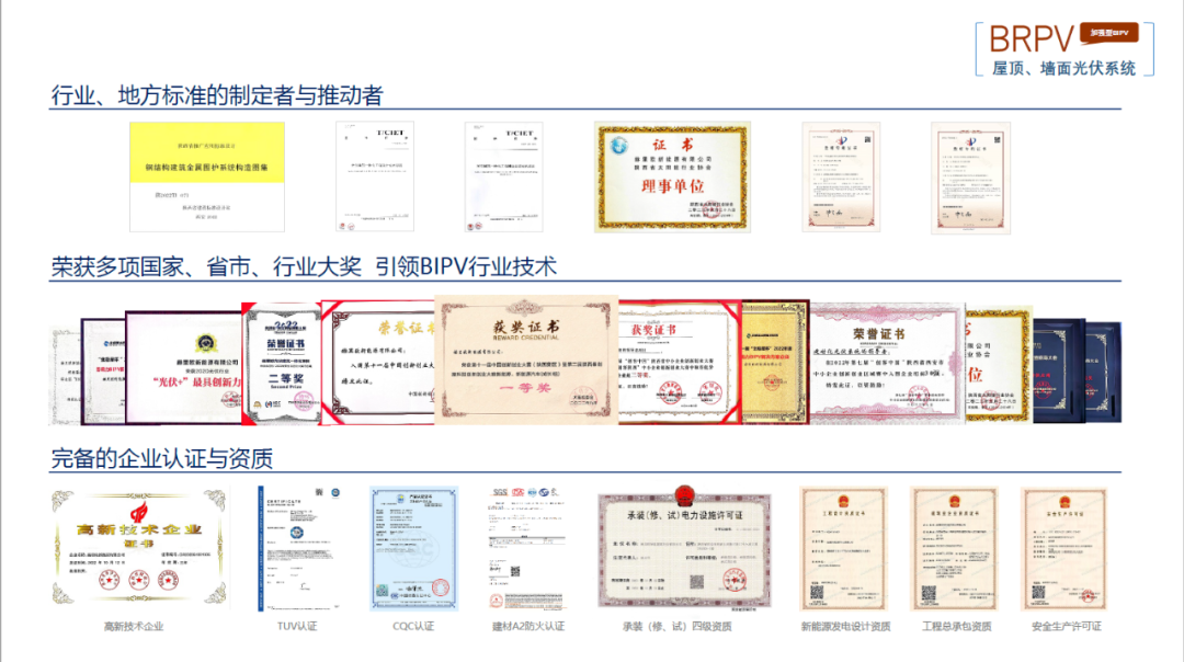 金数据作为光伏行业、地方标准的制定者和有助于者,荣获多项国家、省市、行业大奖引领BIPV行业技术,具有全面的企业认证与资质。