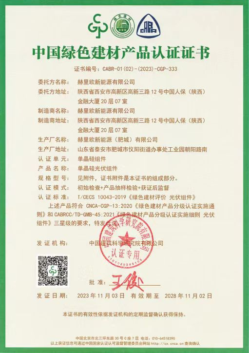 图6 绿色智能发电建材认证证书