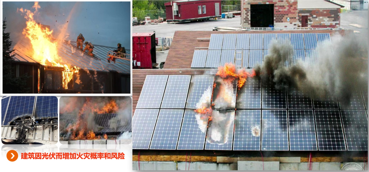 另外,国内不少既有煤棚由于承重不够,选用双面有机材料的柔性组件粘贴在煤棚上面,由于常规柔性组件为易燃材料,阻燃等级很低,且紧贴屋面散热不畅,热斑效应显著,隐患成倍放大。加上再采用高压直流发电,无异于直接把着火隐患顶在煤棚上方!